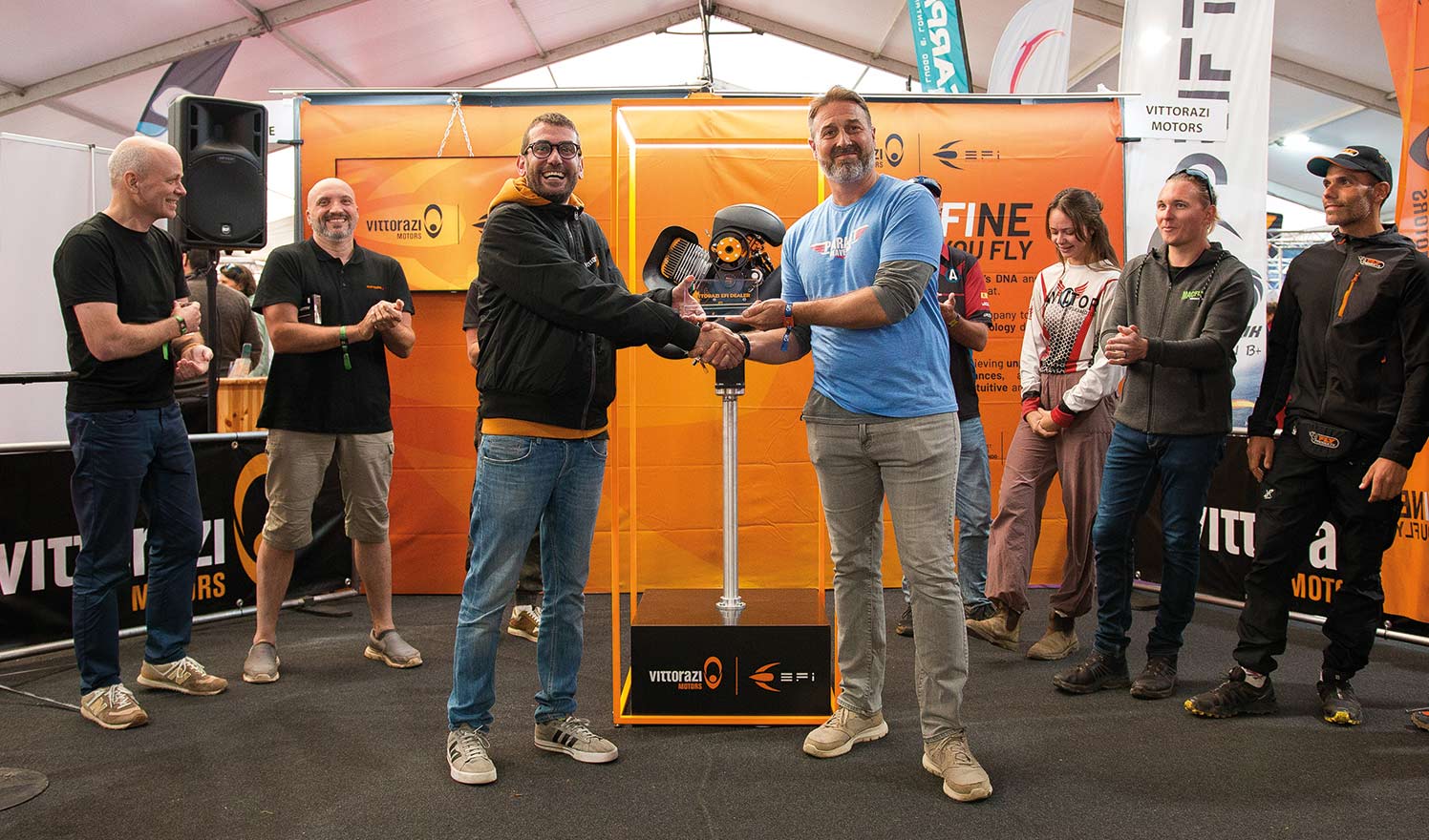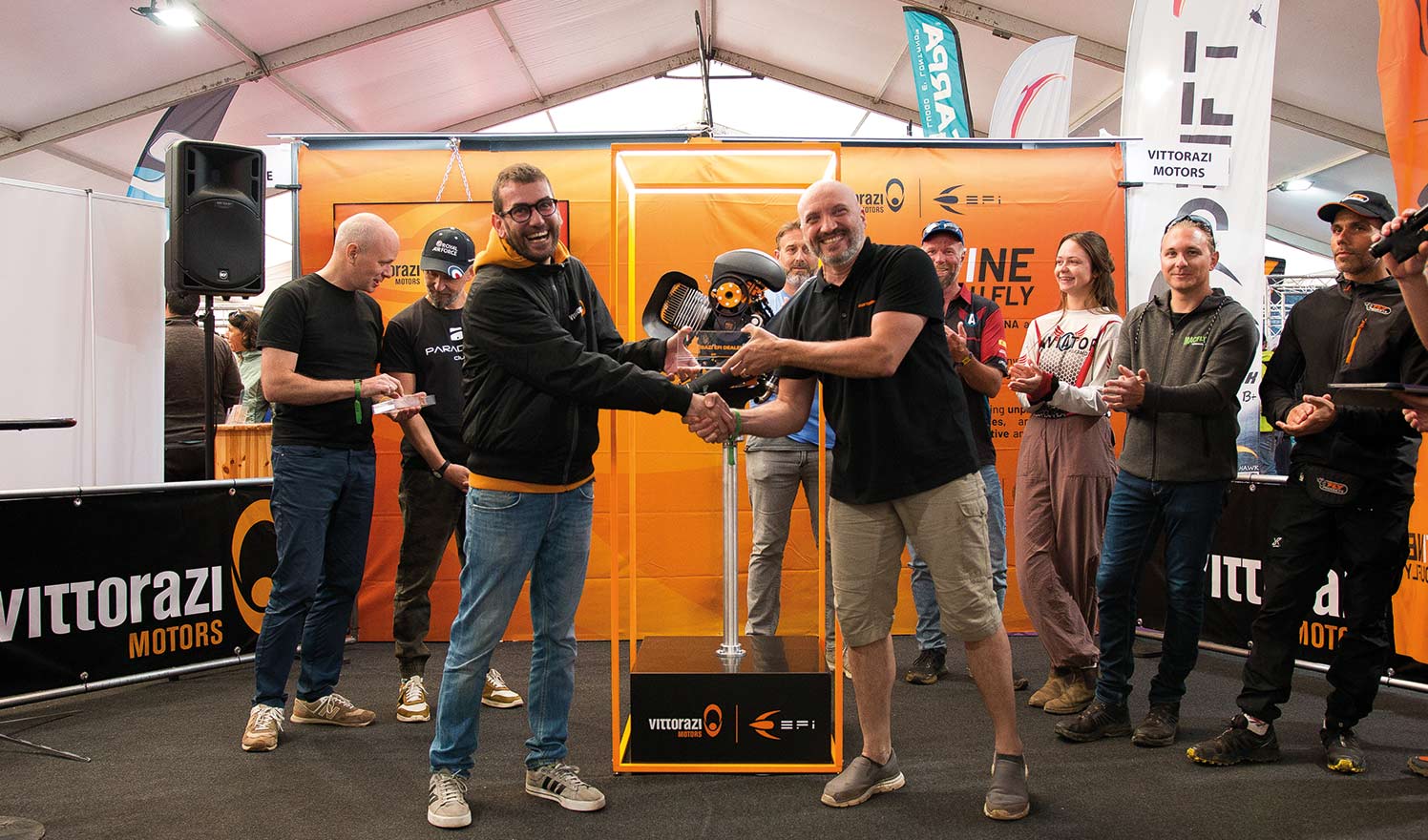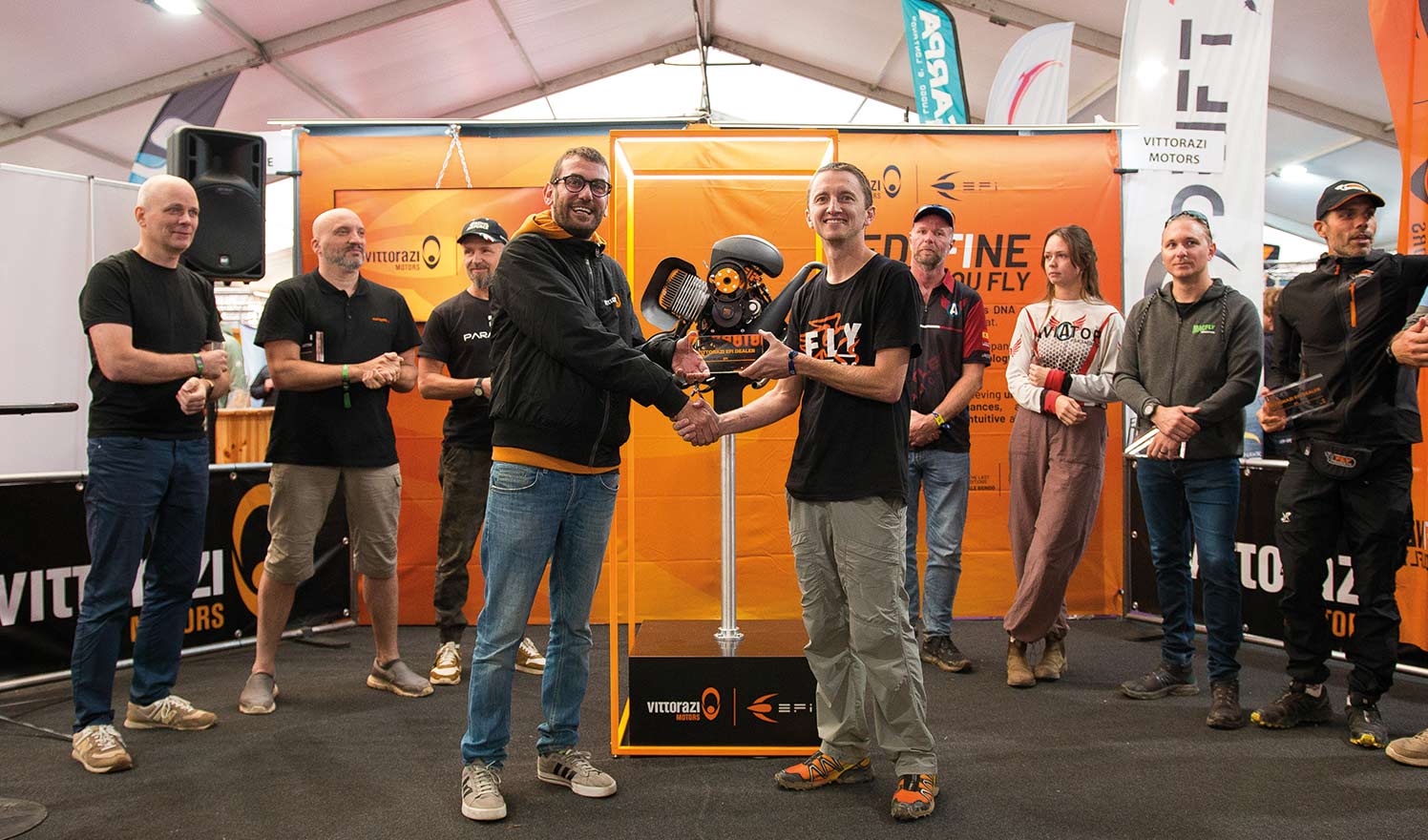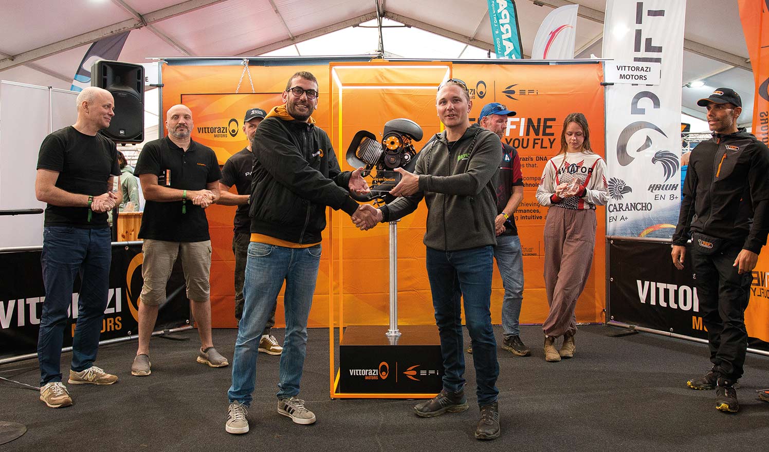 On that day, in fact, inside a Vittorazi booth filled with many paramotoring enthusiasts, dealers and professional pilots, the highly anticipated Moster185 EFI was officially unveiled by our V.E.D.s – Vittorazi EFI Dealers, who attended the EFI Dealers Event back in July [read the article], and publicly launched for the worldwide market.