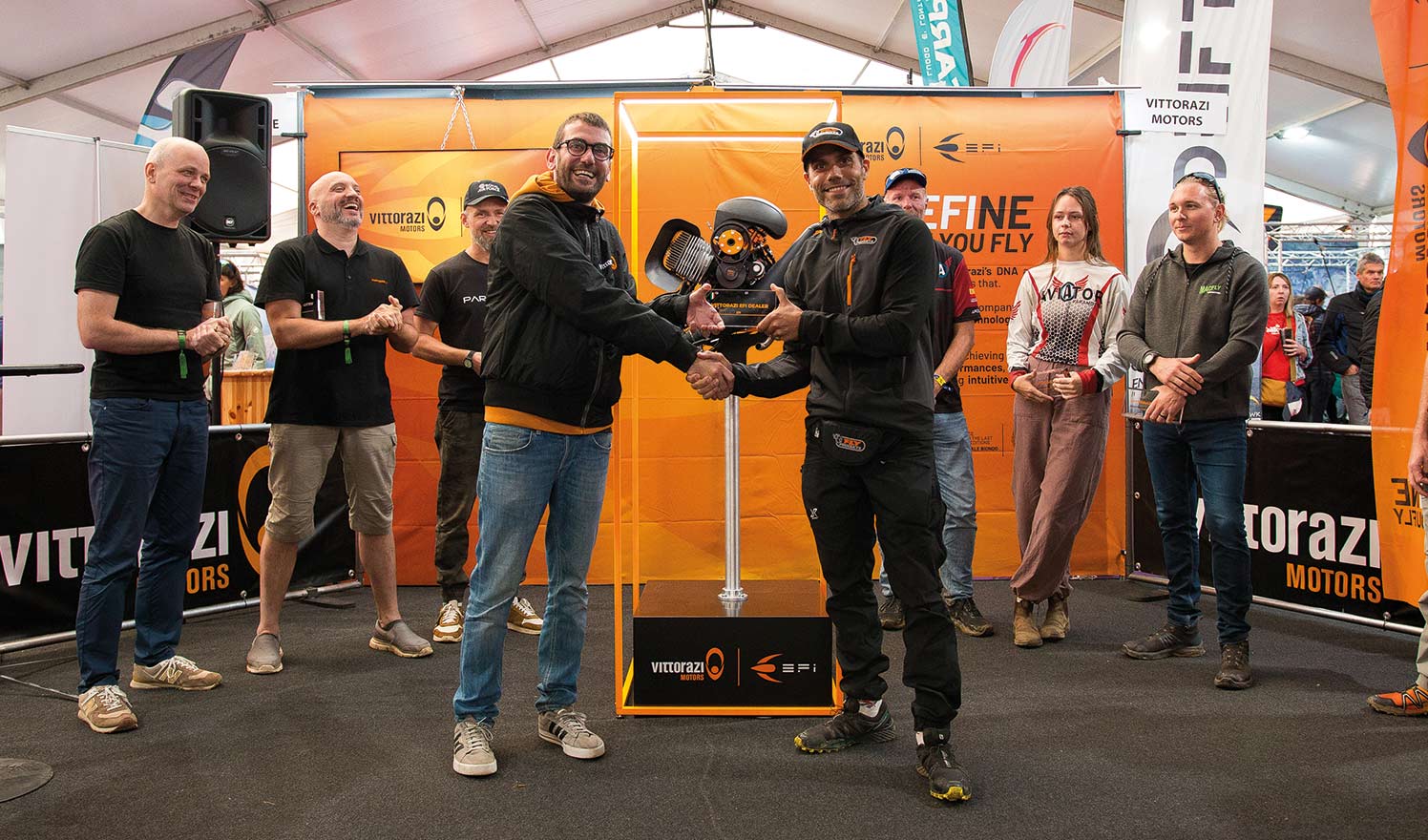 On the following day, a large crowd attended an unmissable opportunity to get a preview of all the information, features and technical details of the new EFI technology and the new Moster185 EFI straight from the voice of our technicians and pilots of the Vittorazi Racing Team during the EFI TECHNOLOGY MASTERCLASS at the Salle Hors Sac – St. Hilaire du Touvet.